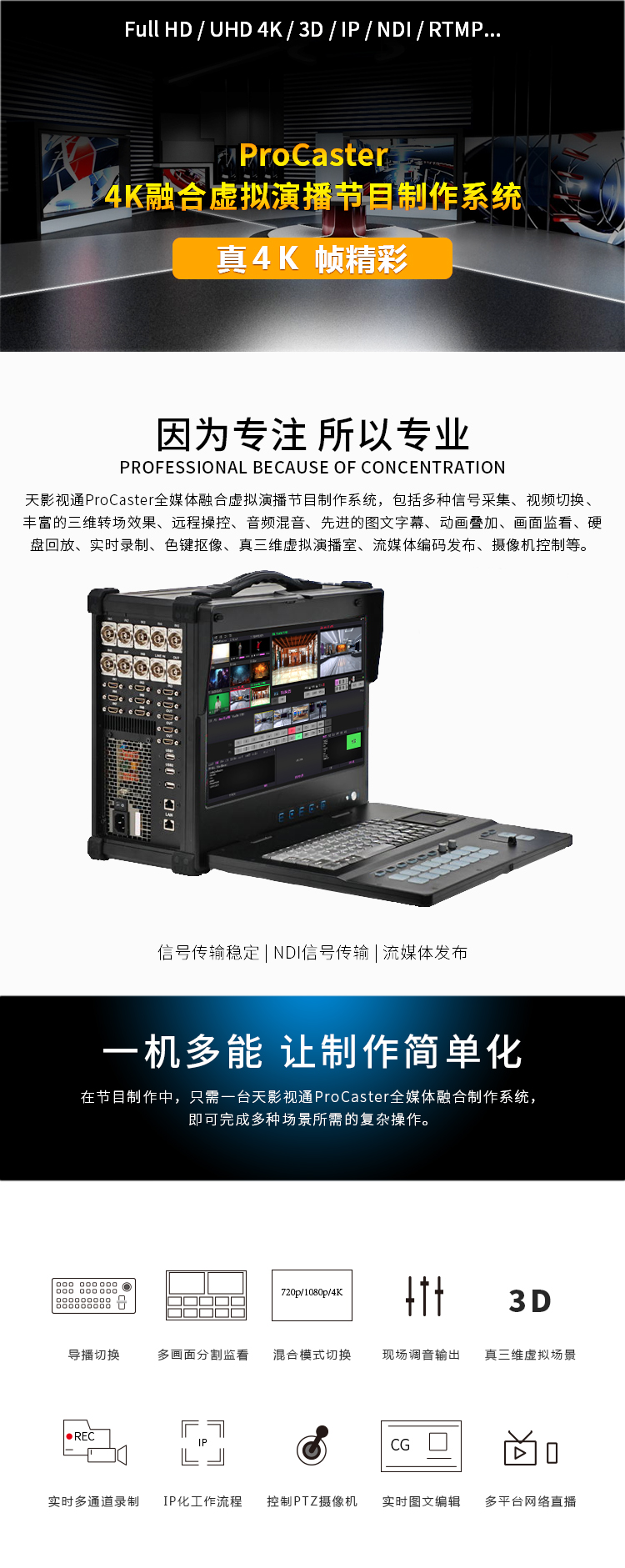 4K融媒体真三维虚拟演播室系统AR人工智能ProCaster